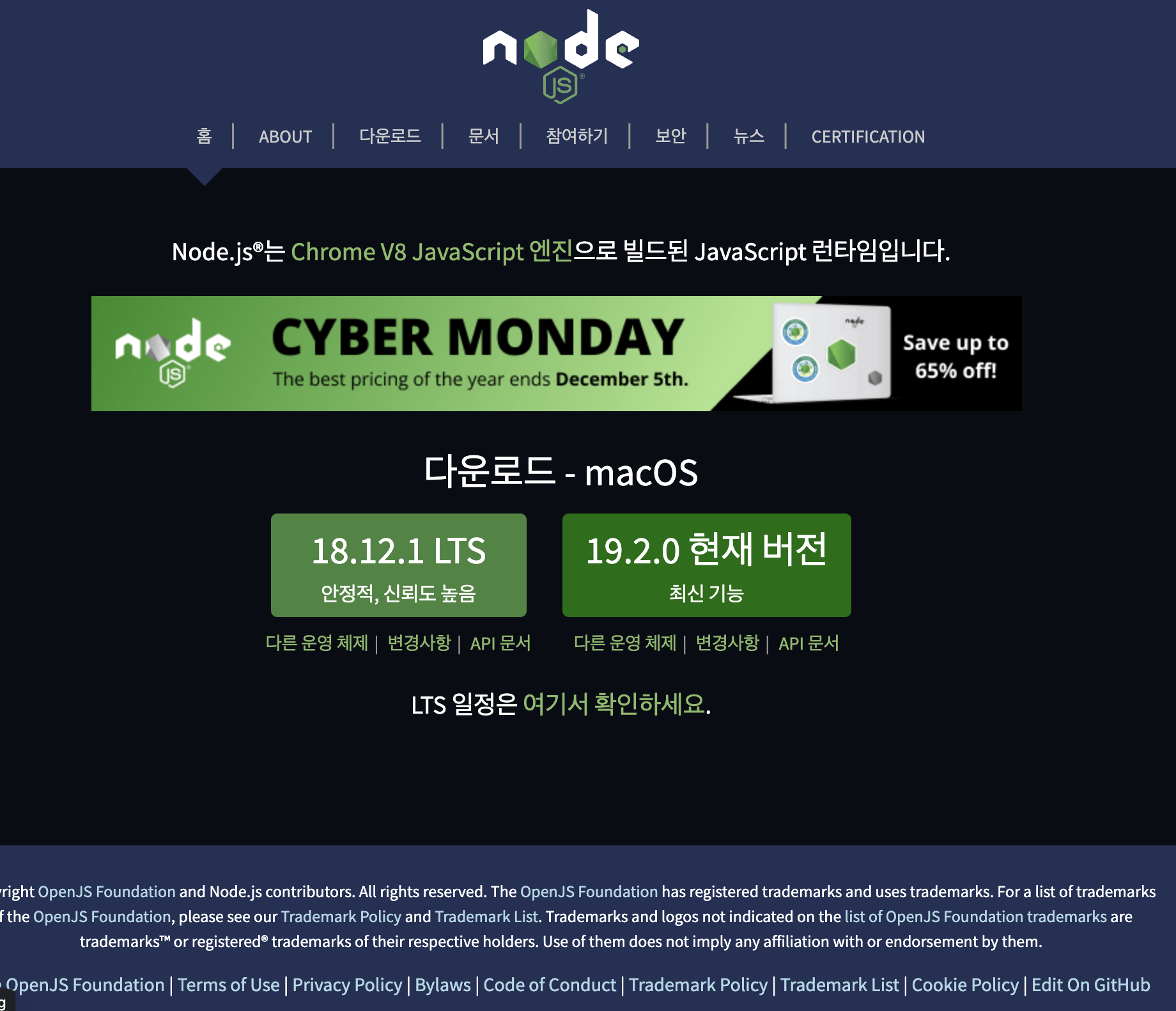 먼저, 링크로 접속하여 node.js를 설치합니다.