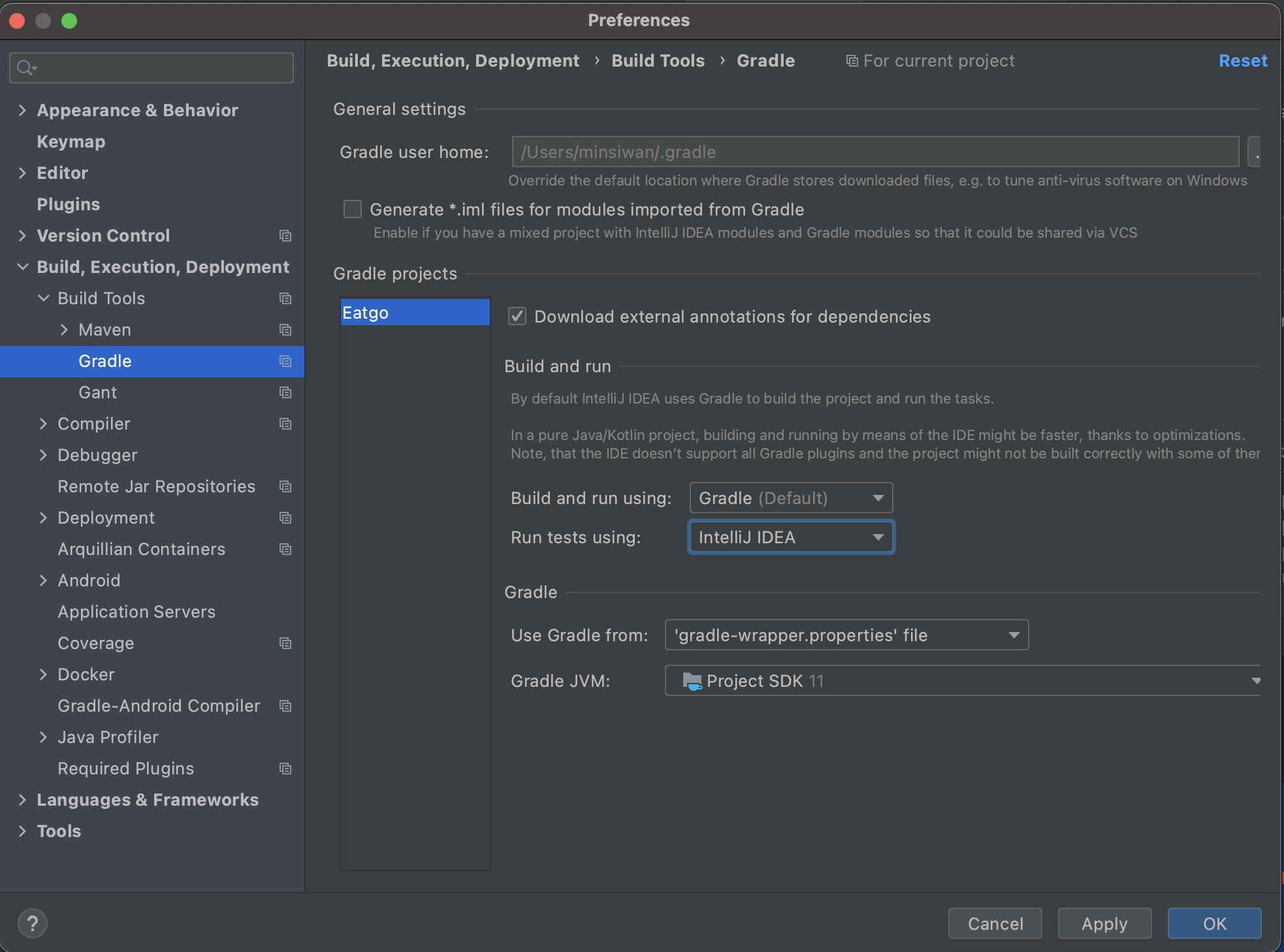 IntelliJ IDEA >> Preferences >> Build, Execution, Deployment >> Build Tools >> Gradle