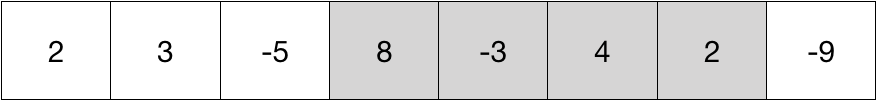 N개의 정수가 주어질 때, 연속된 부분을 선택하여 합을 최대화 하는 프로그램을 작성하시오. 예를 들어, 아래와 같이 8개의 숫자가 있을 경우, 색칠된 부분을 선택했을 때 그 합이 가장 최대가 된다.