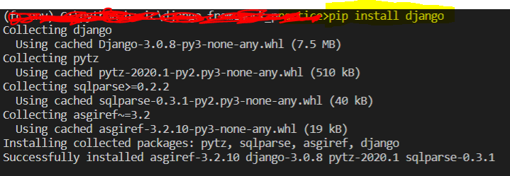 터미널에 pip install django 를 입력해서 django 패키지 또한 설치해주세요