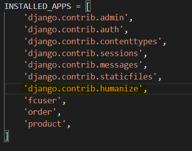 fc_django > settings.py 로 가셔서 'django.contrib.humanize' 도 추가해 주세요