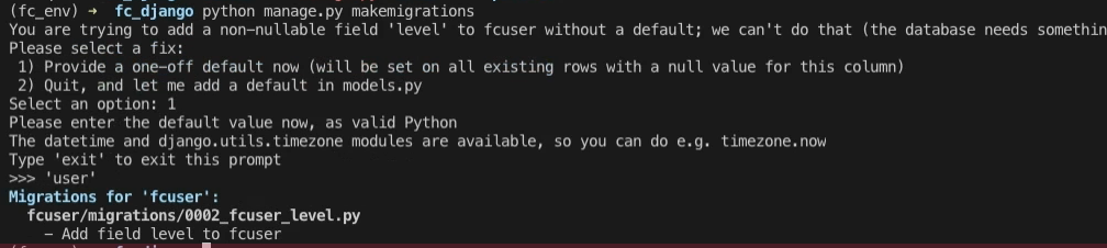 fcuser 앱에서 models.py 수정하기